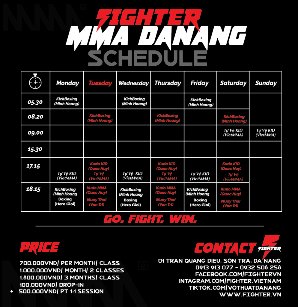 LỊCH TẬP LUYỆN TẠI TRUNG TÂM FIGHTER MMA ĐÀ NẴNG